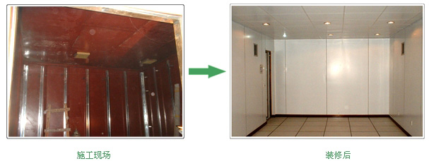 “焊接式屏蔽室屏蔽殼體與內部裝修之間的對比圖例”